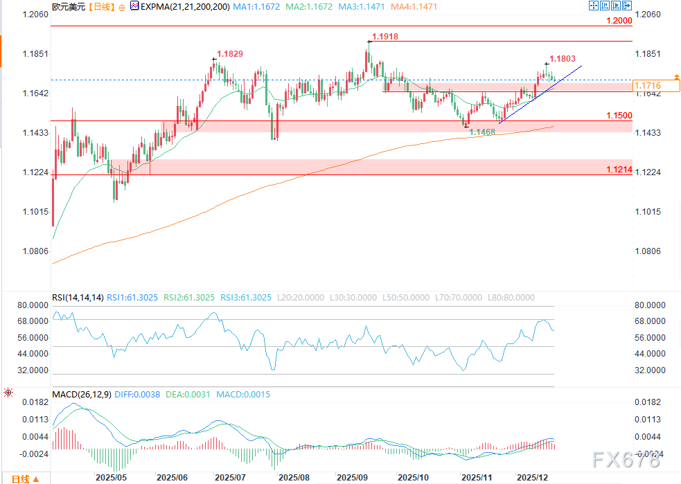 下行方面,若汇率有效跌破1.1650-1.1680关键支撑区间,市场注意力将转向1.15一线,该位置汇聚了200日移动平均线和长期支撑位的双重支撑。